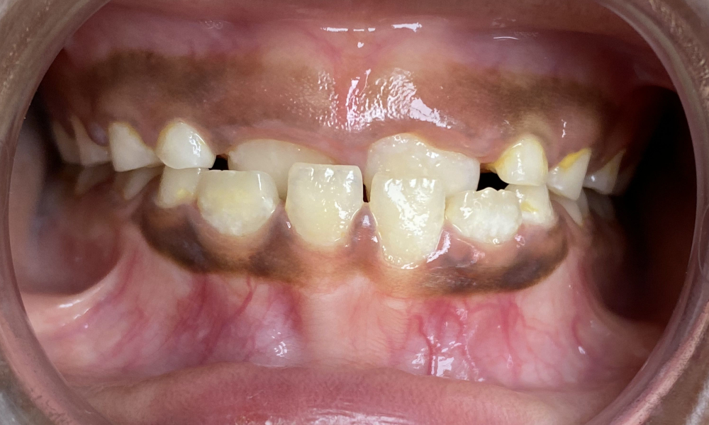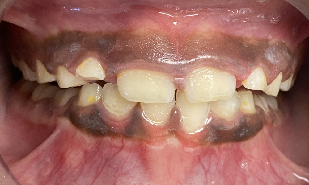 Avant après d'un cas d'encombrement traité par gouttières